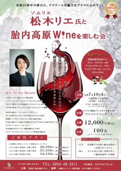 提供ワイン(予定)…市制20周年記念ワイン、ヴァンペティアンロゼ、アッサンブラージュブラン、
