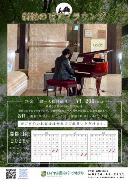 夕食後のひとときを彩る「ピアノラウンジコンサート」を開催いたします。