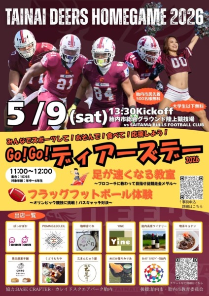 【試合イベント】胎内DEERS ホームゲーム 2026シーズンの初戦は胎内市での開催!